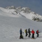 4 groupes de ski et un de raquette ont été constitués. Un groupe est allé avec Hervé et Michel faire la pointe des Marmottes Noires au départ du Biollay pendant que les 3 autres groupes , au départ de Celliers, sont partis pour deux d’entre eux en direction du Rognolet par la combe des Plans et le dernier à Grand Plan au dessus du refuge. Le groupe raquettes était aussi d’ailleurs présent ici.